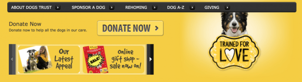 Это может быть даже такая небольшая деталь, как картинка рядом с кнопкой для пожертвований, как на сайте Dog’s Trust.