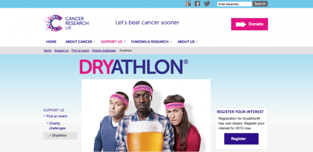 Сайт CRUK’s Dryathlon и January’s Veganuary.