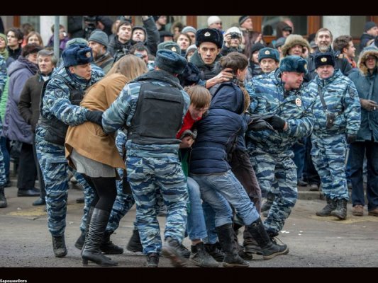 Я вышел, как и много раз до этого выходил, что бы выразить свое несогласие с репрессиями государства в отношении собственного народа. Я не пришел на митинг, я пришел к зданию суда. Я даже не скандировал лозунгов, я не поднимал транспарантов, я не отбивал задержанных (каюсь), я как обычно общался с «рабами государства» (далее именно так я буду называть некие мифические правоохранительные органы, действия которых направленны исключительно на подавления инакомыслия в гражданах)мотивировку такого названия я изложу в другом посте. Пообщаться удалось не долго. Омон на этот раз был особенно отмороженный, а я в этот раз решил прийти без удостоверения журналиста хотя и прихватил на всякий случай бейджик. Как только я подошел к цепи Омона, нас стали выдавливать обратно. Я спросил почему нам не дают тут стоять, на что мне сказали. что здесь проезжая часть. Проезжая часть была перегорожена металлическими рамками, поэтому я попросил сотрудников их убрать, потому как они мешают проезду машин. В общем мы еще немного мило побеседовали о законности и незаконности их требований. После чего, какой-то мордоворот в казенном бушлате начал грубо пихать женщину. Я возмутился и попросил его прекратить эти действия. Тут то он указав на меня и сказал «задерживаем». Мой вопрос «За что «остался неуслышанным, в следующую минуту этот бугай рывком свалил меня на землю и упал на меня сверху. Я попытался выбраться из-под него, но он весил как детеныш носорога и мне этого сделать не удалось. После чего шестеро человек схватив меня потащили к машине. Как вы понимаете, не то что сопротивляться, но и задавать какие-либо вопросы по поводу «задержания» в таком положении уже не представляется возможным. После чего, тот кто тащил меня спереди пообещал, что сейчас отобьет мне яйца. Меня закинули в автозак и собственно на этом процесс задержания можно было бы считать оконченным, но одному из «рабов» не терпелось показать, что он главнее остальных и что именно его необходимо сейчас бояться. Он вошел в клетку и сказав «Я сейчас тебя тут закопаю» Нанес мне хорошо поставленный удар в область сердца. Я стоял, где то на середине автозака, а оказался в самом его конце, сползающим по стенке. «Раб» подбежал и ударил меня по лицу кулаком. К моей (да и к его тоже) удаче в этот самый момент на меня буквально упали, заслонив меня собой 3 девушки, уже к тому времени находившиеся в автозаке. Удар вышел смазанным и мне именно благодаря им удалось избежать еще и сотрясения мозга. Они хором закричали, что бить меня не дадут. «Раб государства» понял. что бить придется всех и решил этого не делать. После чего автозак стали забивать следующими задержанными, около автозака избивали какого то парня, а я почувствовал боль в области сердца и учащенное сердцебиение. Так как я совсем не планировал, что меня будут задерживать, а уж тем более избивать, лекарства я с собой не взял. Понимая, что если меня от сюда увезут, то вызвать скорую в случае гипертонического криза мне уже не удаться я позвонил в скорую и сообщил о своем самочувствии. Надо отдать должное скорая приехала вовремя, и смогла забрать меня из автозака, правда для этого мне пришлось все-таки показать «рабам» свой бейджик. Врачи сделали мне кардиограмму и вкололи лекарство снизив давление и тем самым предотвратив возможность развития негативных посл