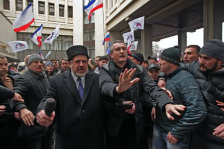 Верховная рада и кабмин Крыма захвачены вооруженными людьми в форме без опознавательных знаков. Прокуратура квалифицировала захват как теракт. Под дулами автоматов прошла внеочередная сессия парламента Крыма, постановившая провести 25 мая референдум о статусе автономии. Новые власти Украины и блок НАТО предупредили Россию о недопустимости вмешательства в дела Крыма.