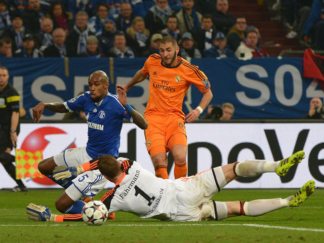 Королевский клуб сделал уверенный шаг в четвертьфинал самого престижного еврокубка, забив в Гельзенкирхене шесть мячей - 6:1. Мадридцы повторили рекордно крупный счет в выездных матчах плей-офф ЛЧ. У победителей дублями отличились Карим Бензема (13', 57'), Гарет Бэйл (21', 69') и Криштиану Роналду (52', 89'). Автором гола престижа "Шальке" стал Клас-Ян Хунтелар (90+1').