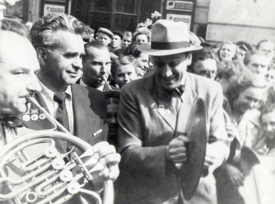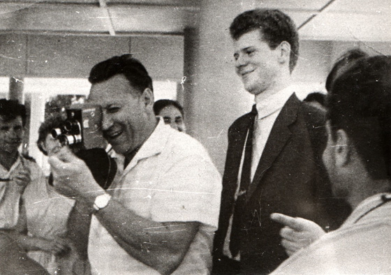 © Из архива П. Кондрашина Вячеслав Трайбман: Мне рассказывал солист-флейтист нашего оркестра Альберт Леонидович Гофман. У него была прописка в Днепропетровске, а работал он в Москве, и был приказ выселить его чуть ли не в 24 часа. Так Кирилл Петрович устроил телеграмму лично Хрущеву за подписью Шостаковича, Хачатуряна, Ойстраха и кого-то еще! И Алика не выселили. На Бутырском хуторе (недалеко от тюрьмы) тогда строили дом, где Кирилл Петрович выбил какое-то количество квартир для музыкантов. Семейные получили квартиры, Алик, поскольку был одинокий, получил комнату.