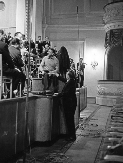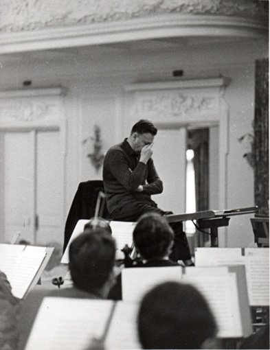 © Из архива П. Кондрашина Трайбман: Не-ет, не 15 минут! Он до конца произведения смотрел! И губами так еще артикулировал! Мы его уговаривали: «Кирилл Петрович, вот когда стоят телевизионные камеры или когда публика позади оркестра сидит — ну пожалуйста, не делайте лицо! Потом лучше вызовите в дирижерскую и делайте что хотите». Но он не мог.