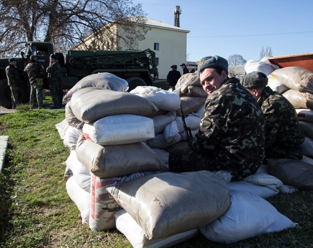 Вместе со своими коллегами он третьи сутки сидит в кабинете инженерно-авиационной службы. Украинские контрактники – им по 30–40 лет – находятся на базе в режиме полной боевой готовности, некоторые перемотали рожки «калашниковых» скотчем: так магазины автоматов можно быстрее менять в условиях боя. Взрослые мужчины, многие из которых отслужили в советской армии и прошли «горячие точки», обсуждают ввод на Украину российских войск. В том, что к ним пришли русские, ни у кого нет сомнений: неизвестные люди в масках, которые наотрез отказываются общаться с журналистами, куда охотнее идут на контакт с коллегами по ту сторону «фронта»