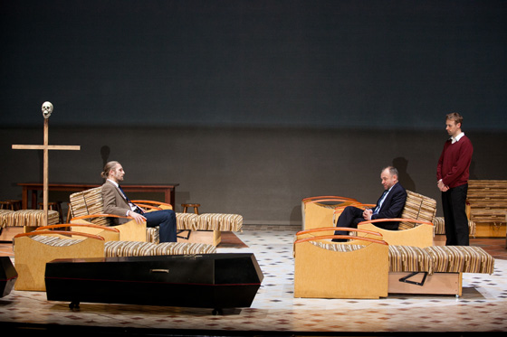 Финальный титр «Смерть — самое лучшее, что с вами может случиться» принадлежит скорее всего самому режиссеру (роман, каюсь, не перечитывала) — и, увы, обескураживает. По одной лишь причине: эта сентенция подрывает тонкое обращение с языком, которому на протяжении спектакля Богомолов вместе с польскими актерами отдавался либо с заносчивой скромностью, либо со скромной заносчивостью.