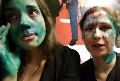 Комментарии Толоконниковой и Алехиной, а также кадры нападения выложены на YouTube. На груди у нападавших видны георгиевские ленточки.