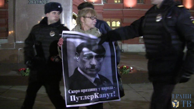 В центре Москвы задержаны пятеро участников гражданского схода в защиту "узников 6 мая". Как сообщает корреспондент "Граней", активисты собрались у памятника маршалу Жукову в 19 часов и мирно беседовали, полиция им не препятствовала. Полтора часа спустя, когда люди собирались расходиться, активистки Екатерина Мальдон и Ирина Калмыкова развернули плакаты и тут же были задержаны.