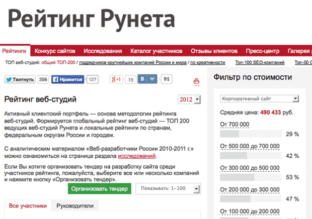 - биржи и каталоги фрилансеров и студий − существуют в сети биржи фрилансерских услуг, позволяющие не только вступить в контакт с большим количеством профессионалов, но также помогающие обслуживать процесс коммуникаций с ними; в отношении веб-студии можно рекомендовать обратиться к рейтингу веб-студий Рунета (см. секцию в конце статьи) с возможностью фильтров по различным критериям и регионам.