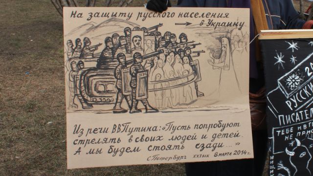 2 марта в сквере на Исаакиевской площади собралось около 400 антивоенных активистов, около 30 из них были задержаны. В сквер пришли и сторонники аннексии Крыма, в том числе депутат петербургского ЗаКСа Виталий Милонов, который лично отбирал плакаты и оскорблял пожилых антивоенных активистов. Возникли потасовки, одному из активистов сломали нос. Сторонник Милонова облил фекалиями пожилую художницу Елену Осипову.