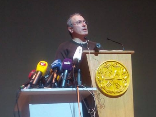 Ходорковский предложил свой вариант выхода: «Наилучшим решением могло бы быть сохранение Крыма в составе Украины, но с созданием самой широкой автономии, например, той, которую имеет Шотландия в составе Великобритании, и с предоставлением безусловного права населению Крыма на использование родного языка. Можно подумать также о соглашении между Украиной и Россией о создании на территории Крыма совместной экономической зоны. В рамках такого соглашения Россия могла бы осуществлять программы экономического развития региона. Если моя страна действительно хочет помочь соотечественникам, то ей надо такую возможность предоставить. Для этого России вовсе необязательно отбирать территорию у дружественного соседа, у исторически братского государства. В любом случае, теперь Крым — проблема на десятилетия, и ее надо решать». Можно считать это советом, а можно — политической программой. Не самой, кстати, плохой. И еще посетовал экс-бизнесмен, что энергию и деньги, направленные в сторону Крыма неплохо было бы повернуть в сторону загибающихся российских регионов, где есть, чем заняться. Но тут он не оригинален, потому как об этом пишет весь русскоязычный Фейсбук, и фотографии прилагают — покосившихся домов, разбитых дорог, неработающих школ... Хотя мысль от этого не теряет своей здравости и актуальности. Ну, и еще из планов по урегулированию ситуации в Крыму — было сказано, что необходимо собрать международную конференцию по этому вопросу. А по результатам конференции создать комиссию по Крыму... Сразу где-то на краешке сознания замаячила Ялта, Черчилль с сигарой и т.д… Во время вопросов из зала поинтересовались, почему Ходорковский сказал журналистам, что во многом согласен с президентом Путиным? Ответ был такой: «С Путиным у нас в 70-ти случаях совпадают глобальные цели: он хочет благосостояния для российского народа, и я тоже хочу благосостояния для российского народа. У нас глубокое противоречие по методам» (бурные и продолжительные аплодисменты).
