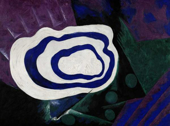 Цвет света и свет цвета, энергию того и другого художник показал как раз в «Восстании», объединив условное геометрическое построение с реалистическими фигурками. Иначе свет он применил к северным пейзажам, где северное сияние напомнит электрическую вспышку («Северное сияние», 1925 г.). И еще по-другому Редько использует это самое найденное им выражение энергии в работах вроде «Динамита», вплотную приблизившихся к абстракции. (Забавно, кстати, что, например, Наталия Гончарова, тоже в духе времени размышлявшая о понятии энергии, в 1913 году также высказалась языком абстракции. Правда, не ясно, является ли ее «Пустота» разрушительной или созидательной силой, которая трансформирует неровную цветную «лужицу» во что-то новое.)