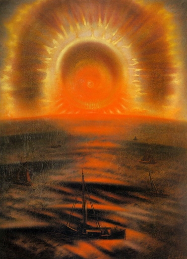 Климент Редько. Полуночное солнце (Северное сияние). 1925 В 1921 году он, Соломон Никритин, Александр Лабас, Александр Тышлер объединились в группу проекционистов, иначе называемую электроорганизмом — как раз по теории Редько (соответствующую декларацию художник написал в 1922-м), а в 1924-м стали группой «Метод». Электроорганизм — в духе времени и не без влияния его учителя Кандинского — говорит, с одной стороны, о чуткости искусства к научным изысканиям, с другой — о психическом воздействии, которое автор транслирует через картину. Редько называет энергию «будущей культурой жизни» и электричество, световой луч считает способом передать время и пространство: «Художник должен утверждать новые понятия реализма творчески осмысленными фактами. Первый изобразительный элемент конструкции — линия. Второй — цвет, дальше — тяжесть и образ», ну а «свет — высшее выявление материи». И на смену электроорганизму у него придет свеченизм (он же — люминизм), где снова откликнутся находки 1910-х — тот же лучизм Михаила Ларионова.