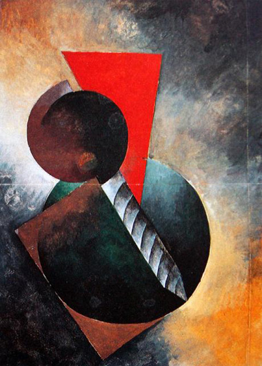 Наталья Гончарова. Пустота. 1913 Видимую форму Редько показывает как воспринимаемую, динамика (впрочем, не удовлетворившаяся находками футуристов), выразившаяся в геометризации, сгодилась и для «Завода» (1922), где вертикали труб перемешаны с диагоналями рельсов, близкое с далеким, движущееся со статичным и видимое с тем, что представляется. В том же году «Мужа и жену» он «пропустил» сквозь такой же геометрический фильтр. А в 1924-м написал «Композицию I» — то ли в высоту, то ли в глубину длящееся пространство из восьми ячеек, в которых трудятся весьма деловитые (хотя и условные, как схема) человечки, соединенные и друг с другом, и с теми самыми комнатками-клетушками разноцветными линиями. И, по всей видимости, плоскостное изображение компенсируется мысленной картинкой, где все линии и пространственные уровни образуют большой мир, организм. Симптоматично, что Редько работу над произведением называл «кино». К слову, отсюда можно протянуть нить ко второму русскому авангарду и Владимиру Янкилевскому, который умеет даже биоморфные формы иронично преподать в механистической трактовке.
