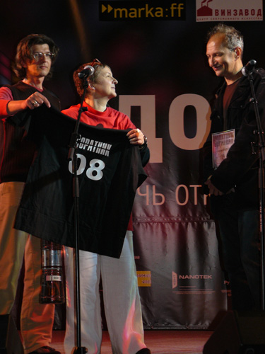 © предоставлено Антоном Литвиным Вручение премии Андрею Кузькину, 2009 Чтак: Единственной ценностью для меня в этой премии был какой-то дух времени, как вот некий крен в политику, некий крен в более философские вещи. Никто до Pussy Riot из победителей не набрал 19 голосов.