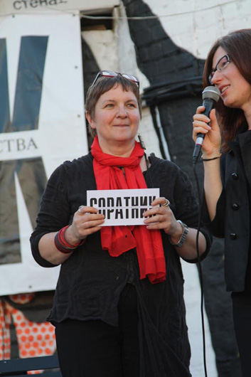 © предоставлено Антоном Литвиным Вручение премии Анастасии Рябовой, 2011 Литвин: С одной стороны, мы пришли к этому почти одновременно, с другой — у всех, как я уже сказал вначале, разные мотивы. У меня это решение созрело осенью, именно потому что, на мой взгляд, премия «Соратник», если бы мы ее вручили в этом году, не соответствовала бы заявленному статусу. Даже само название говорит о том, что эта премия в первую очередь призвана консолидировать, объединять и укреплять сообщество, несмотря на то что мы все как художники — прямые конкуренты и совершенно не обязательно со всеми дружить и даже здороваться, но тем не менее мы участвуем во всех проектах и по большому счету решаем одну задачу — развивать актуальную культуру, актуальное искусство страны. И в этом смысле мне казалось, что цель «Соратника» — именно объединяющая и направлена на общее дело. Последние два года, как я написал во вводном тексте, который коллеги мне не разрешили опубликовать, я считаю, что премия начала терять ту чистоту и задачу, для которой была создана. Мне это стало ясно в прошлом году, после присуждения премии Pussy Riot, потому что это была настолько очевидная победа, что мы начали обсуждать ее даже до голосования.