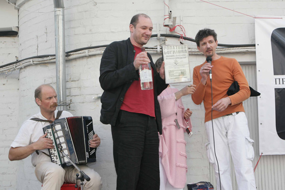 © предоставлено Антоном Литвиным Вручение премии Арсению Жиляеву, 2010 Балаховская: Но это же тоже важно, что художественное сообщество выделяет лидеров — Осмоловского, Жиляева, Чтака.