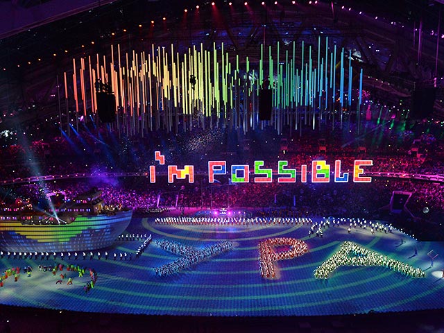 Участники шоу сформировали надпись "Нет, возможно", которая стала "отражением" парящего в воздухе девиза "I'm possible". После этого играющая на стадионе "Фишт" музыка усилилась и ведущий церемонии объявил начало праздничного вечера.