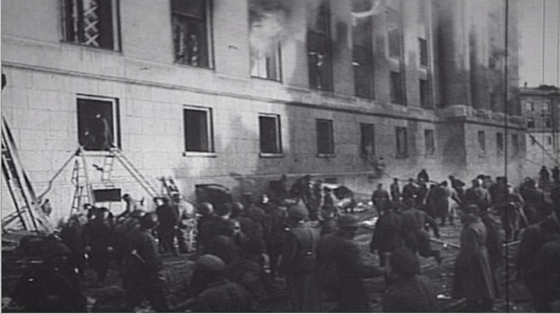 Кадр из фильма «Ленинград». Пожар у Московского вокзала после авианалета. Осень 1941 г. — Насколько я понимаю, «Ленинград» существует в виде мультимедийного замысла...