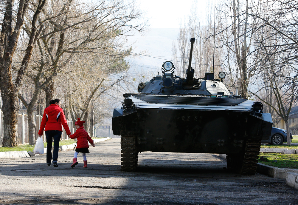 За последние две недели крымчане привыкли к присутствию боевой техники на своих улицах. Село Перевальное, 21 марта 2014 г.