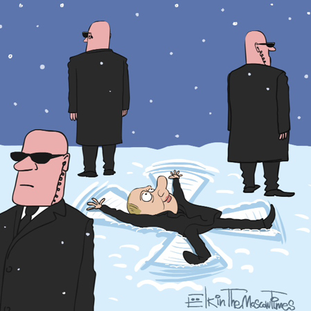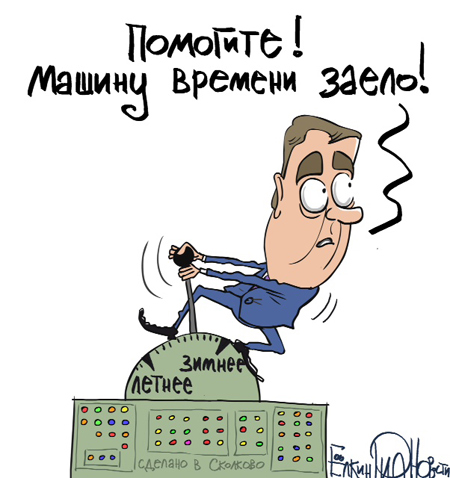 © Мария Данилова Две последние карикатуры Сергея Елкина на Путина и Медведева с автографом автора