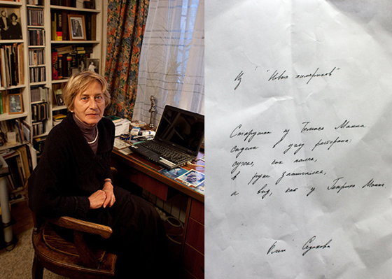 Автограф стихотворения Ольги Седаковой «Старушка из Томаса Манна…»