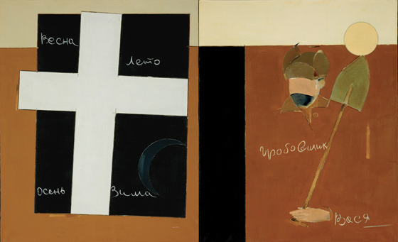 © Третьяковская галерея 1990. Диптих «Весна Лето Осень Зима» и «Гробовщик Вася». Гуашь