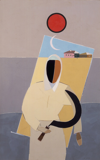 В его примитивистских, позаимствовавших многое у супрематизма геометрических картинах раскрывается вся необъятность России. Он, подобно землемеру, расставляет вехи, смиренно намечает контуры того, что по существу безгранично. Его творчество эстетично, потому что — метафизично. Оно глубинно. Потому что выражает Красоту посредством символов. В нем сближаются дольний и горний миры.