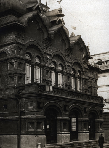 1. Театр Корша(ныне Театр наций), 1910-е гг. Здание в псевдорусском стиле в Петровском переулке (бывш. Богословском) построено по проекту архитектора Михаила Чичагова на деньги московских купцов и меценатов братьев Бахрушиных. В 1885 году передано антрепренеру Федору Коршу, после отмены императорской театральной монополии создавшему на базе полулегально действовавшей труппы Пушкинского театра под руководством актрисы Малого театра Анны Бренко первый частный театр в России. До этого два года Театр Корша располагался в Камергерском переулке — в помещении Лианозовского театра, впоследствии перестроенном для Московского Художественного театра.