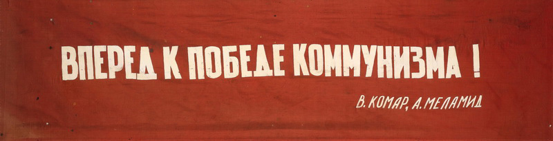 Дмитрий Лукьянов, из серии «ДКданство». 2013 В этом контексте можно вернуться к «Лозунгам» Комара и Меламида или транспаранту «КД». Своей, на первый взгляд, абсурдной интимизацией фрагментов коллективистской идеологии они указывают на изъян в самой конструкции тотального знания и всеобщей истинности, лежащих в основе советской утопии, — на то, что эта утопия, эта адресованная всем истина Бадью не может работать, будучи обособленной от социальных отношений самого личного уровня, не будучи связанной с истиной каждого отдельного субъекта. В своих произведениях Комар и Меламид или «КД» восстанавливают эту утраченную связь истины субъекта и истины всеобщего — и такое восстановление связи оказывается для идеологии провокационным актом, указанием на вытесненное.