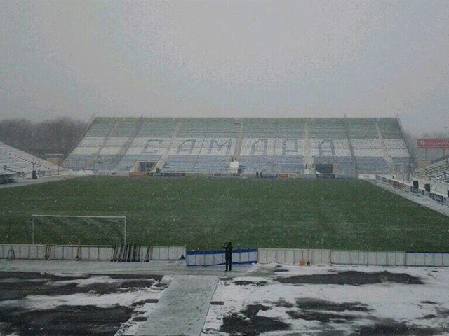 Матч должен был пройти в понедельник, но встречу перенесли из-за обрушившегося на Самару снегопада, приведшего в негодность газон на стадионе "Металлург".