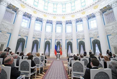 © Пресс-служба Президента России Владимир Путин: «В российском обществе необходимо формировать такую культурную среду, такие ценности, которые бы опирались на нашу историю, традиции, объединяли бы время и поколения, способствовали консолидации нации»Кремль, 25 марта Сегодня, 4 апреля, ряд СМИ со ссылкой на «Интерфакс» публикуют текст проекта «Основ государственной культурной политики», подготовленный министерством культуры РФ. В основу документа положен принцип «Россия не Европа».