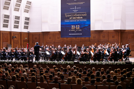 © Транссибирский арт-фестиваль Вадима Репина За полгода с нуля удалось собрать программу, в которой есть решительно все: опера (Ольга Бородина), балет (Светлана Захарова), мировая премьера («Голоса скрипки» Беньямина Юсупова), кино (документальные фильмы про Ростроповича и Нуриева англичанина Джона Бридката), социальные проекты (сотрудничество с фондом Натальи Водяновой «Обнаженные сердца»), региональные проекты (выезды с концертами за пределы Новосибирска), поддержка подрастающего поколения (концерты с участием учеников местного музыкального колледжа), солидный западный коллектив (English Chamber Orchestra) и пригоршня достойных инструменталистов (пианисты Николай Луганский и Андрей Коробейников, виолончелист Марио Брунелло). На открытии Новосибирским академическим симфоническим оркестром дирижировал Кент Нагано, на закрытии в День космонавтики, 12 апреля, будет Валерий Гергиев. В десяти концертах в течение тринадцати фестивальных дней участвует сам Вадим Репин.