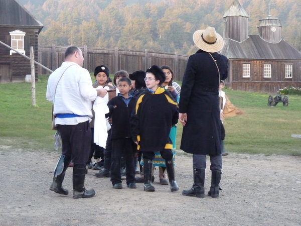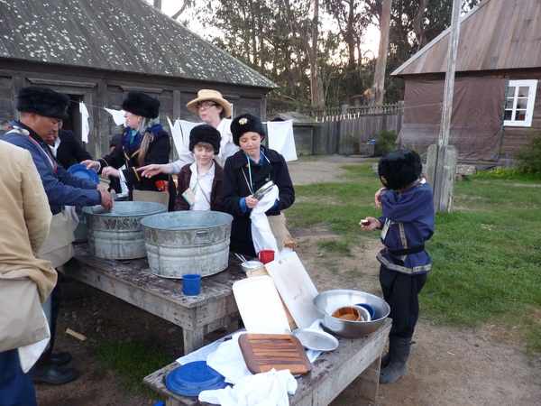 Это, братцы, вот что. Местная школа полгода изучала со своими пяти-шестиклассниками поход русских за пушниной на Аляску и их путешествие в Калифорнию — всю эту, уже хрестоматийную для нас, «юнону и авось» — а потом снарядила детей в поход. Поделили промеж себя реальные имена казаков, собрали на скорую руку одежку и реквизит — и приехали на пару дней в Форт Росс!