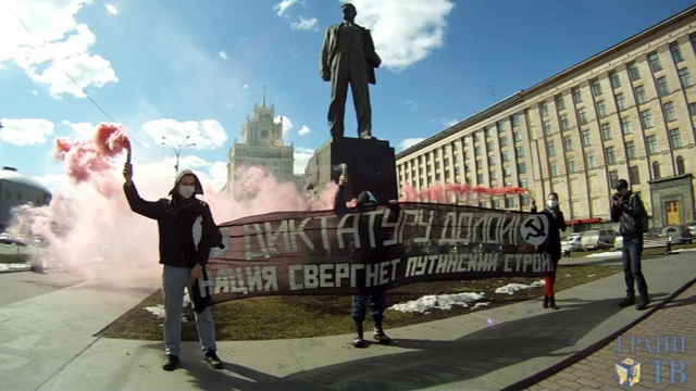 Трое нацболов, вышедших из "Другой России" Эдуарда Лимонова, провели на Триумфальной площади в Москве акцию против диктатуры. Они развернули баннер с лозунгом "Диктатуру долой! Нация свергнет путинский строй!", зажгли дымовые шашки и раскидали листовки. Никто из участников акции задержан не был.