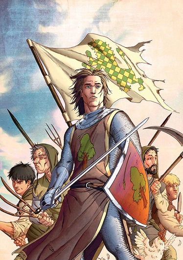 «Межевой рыцарь» Две другие совместные работы Абрахама и Мартина — комиксы по серии «Повестей о Дунке и Эгге». Их действие происходит в знакомой вселенной Вестероса, но примерно за сто лет до событий «Игры престолов». Таргариенов еще не изгнали, король Роберт не вступил в единоборство с лесным вепрем, а численность Старков не пошла на убыль. Главный герой — Дунк, оруженосец странствующего рыцаря, после смерти хозяина сам решает стать межевым рыцарем. То есть беспристрастным и бедным защитником правды, отказывающимся служить единственному лорду. Примкнувший к нему мальчишка Эгг — притворяющийся оруженосцем принц Эйегон Таргариен, будущий король Семи королевств.