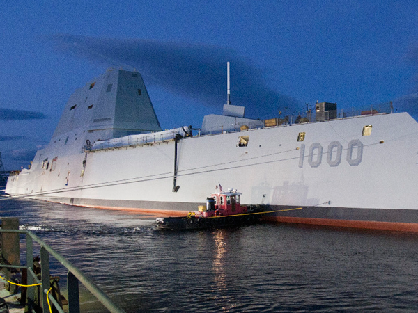 В США на судоверфи Bath Iron Works прошло крещение ракетного эсминца нового поколения типа Zumwalt, сообщает Associated Press.