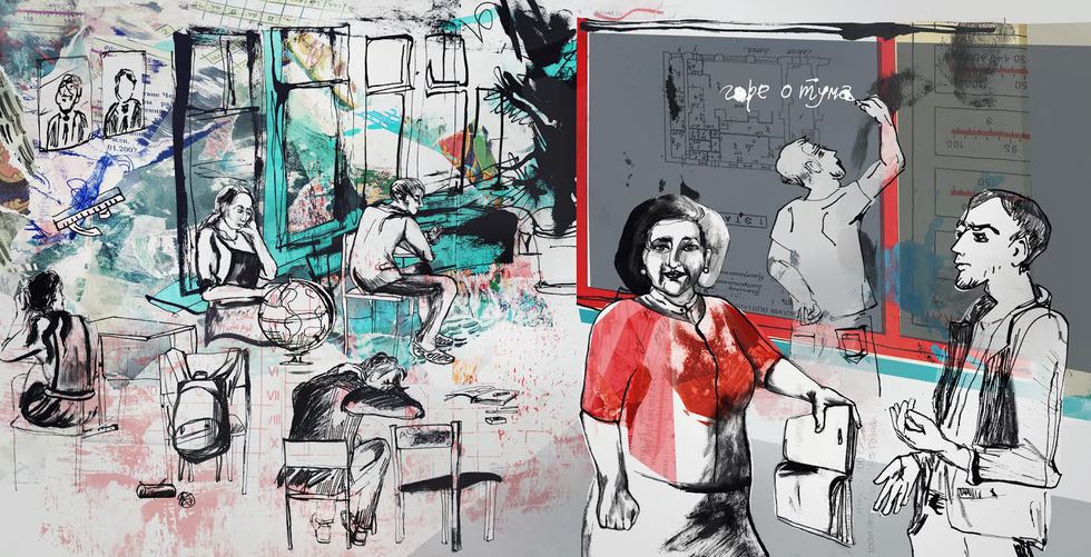 — Я против этого ЕГЭ, Вадим, — начинает Ирина Савельевна. Круглые серьги в ее ушах раскачиваются, как маятник. — Если он будет проводиться в таком виде, в каком сейчас проводится, я стопроцентно против. Это нечистоплотные вещи. Ничему хорошему мы не учим детей, кроме обмана. И за это я вот их ненавижу! У меня один ученик так в СОГУ поступил. А я у них на уроке сидела как-то, и они писали сочинение. Я за ним сижу. Что-то непонятно там написано у него, я так сижу, смотрю, что он написал. И вот он пишет. Вот смотри, — чернильной ручкой она проводит по белому листу, — «Горе о тума». Вот так он пишет. Я говорю: дай свою тетрадь сюда. Я как это увидела! Я говорю: вот это что такое? Это как ты можешь? Расшифруй, я тебе говорю! И он закончил СОГУ с отличием.