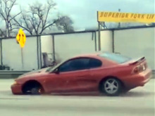 На автостраде в Техасе засняли Ford Mustang, мчащийся на скорости без переднего колеса (ВИДЕО)