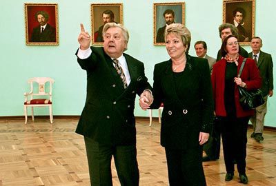 © Российская академия живописи, ваяния и зодчества Ильи Глазунова Илья Глазунов и Валентина Матвиенко Председатель Совета Федерации Валентина Мативенко намерена пожаловаться мэру Москвы Сергею Собянину на главу департамента культуры Москвы Сергея Капкова: он отказал Илье Глазунову в просьбе устроить в Манеже выставку художников-реалистов.