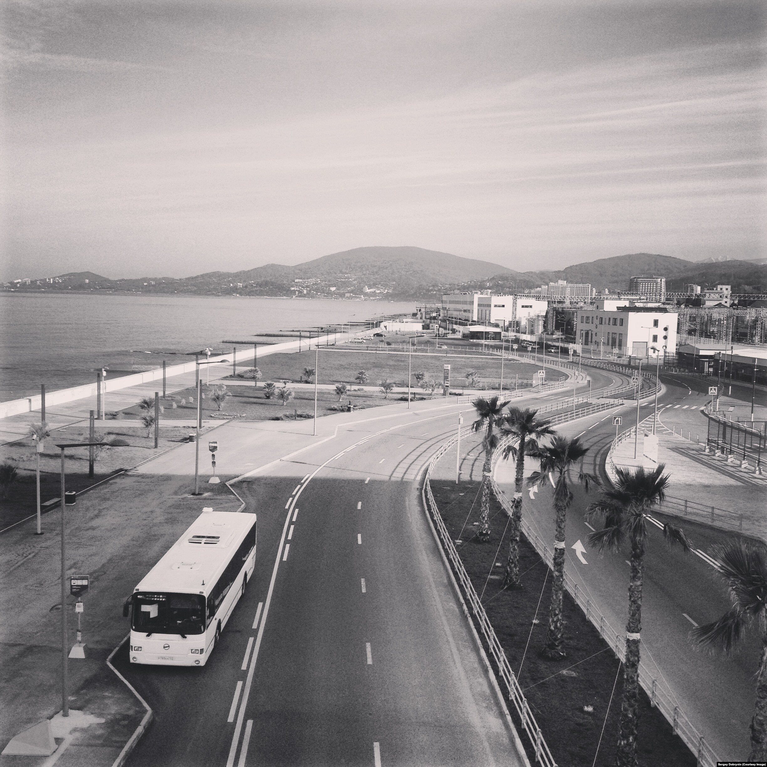 Я приехал в Сочи на двухэтажном поезде, этот состав, курсирующий по маршруту Москва – Адлер, специально пустили к Олимпийским играм. Добраться на юг на нем можно и теперь, причем ровно за те же деньги, что из Москвы до Санкт-Петербурга, несмотря на двукратно большее расстояние. Выйдя из комфортабельного вагона, в котором я мог по пути пользоваться пусть и медленно, но все же работающим беспроводным интернетом, я не поверил, что нахожусь в России. По одну сторону – морская набережная за цепочкой пальм. По другую – огромное, блестящее здание вокзала в форме крыла. А вдалеке за ним – снежные горные вершины.