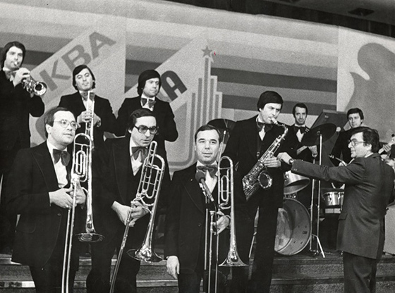 — Как я уже сказал, все музыканты были прекрасными джазовыми солистами, то есть это обеспечивало определенный уровень понимания и исполнения той музыки, которой мы занимались. У нас шесть музыкантов — Бахолдин, Зубов, Гаранян, Фрумкин, Кантюков, Бухгольц — были аранжировщиками. Писать для нас не мог никто. Все, что нам приносили, — а мы записали много материала для эстрады и кино — мы аранжировали своими силами. 99,9 процента. Все остальное мы не принимали — это было беспомощно. Мы знали, в чем кулак этого оркестра, как использовать такую немногочисленную духовую группу, чтобы она звучала плотно, как в биг-бенде. Мы знали, как расправляться с ритмом, то есть мы были передовыми в этом деле. Вот в этом основная заслуга и слава этого коллектива.