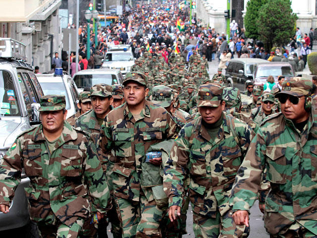 Представители младшего командного состава армии и солдаты прошли в камуфляжной форме по столице Ла-Пасу, некоторые были с женами. В шествии также приняли участие лидеры коренных народов Боливии, которые поддержали требования военных.