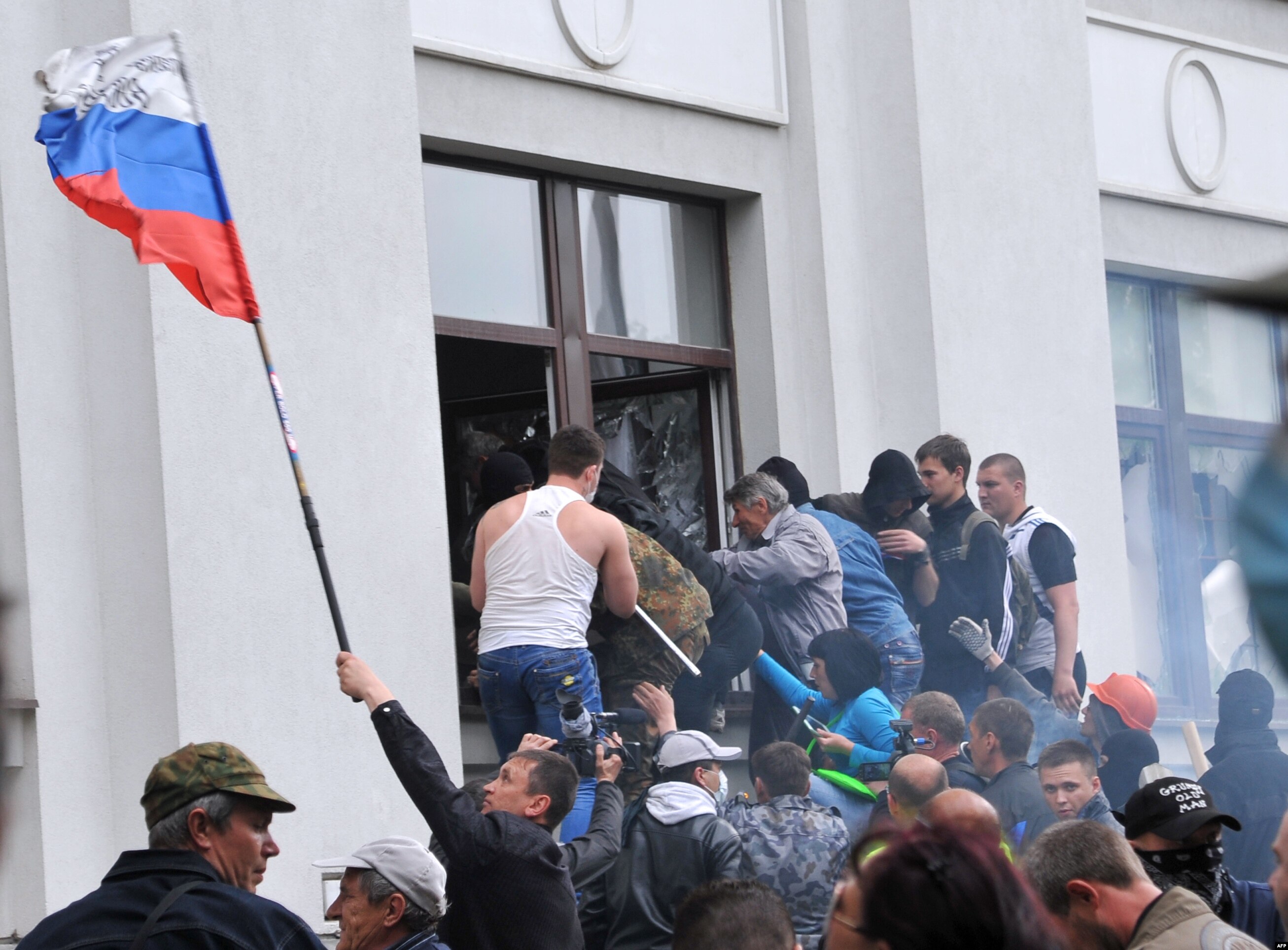 В течение дня поступали сообщения о том, что под контролем экстремистов находятся здания телецентра и прокуратуры. На захваченных объектах устанавливаются флаги Российской Федерации. Сепаратисты заявили, что начальник Главного управления МВД Украины в Луганской области Владимир Гуславский подал в отставку.