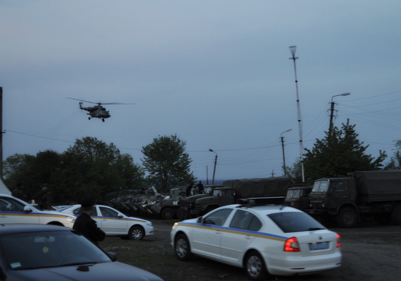 Ранее глава МВД Арсен Аваков написал на своей странице в Facebook, что в Славянске взяты под контроль девять блокпостов сепаратистов. Пророссийские силы открыли огонь против украинской стороны с применением тяжелого вооружения, гранатометов и переносных зенитных ракетных комплексов. По его данным, Славянск взят в плотное кольцо. Железнодорожное сообщение в зоне проведения антитеррористической операции будет перекрыто в ближайшее время, движение по дорогам в районе Славянска ограничено до минимума. Аваков заявил, что идет настоящий бой с профессиональными наемниками. Он также призвал жителей Славянска и Краматорска не выходить на улицы и быть осторожными у окон.