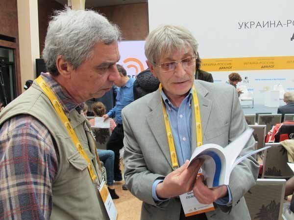 Евгений Головаха показывает Никите Соколову новый номер журнала "Социология: теория, методы, маркетинг" Фото Н. Деминой Об итогах конгресса «Украина – Россия: диалог», состоявшемся в Киеве 24-25 апреля 2014 года, мы поговорили с доктором философских наук, зам. директора Института социологии НАН Украины Евгением Головахой. Беседовала Наталия Демина.