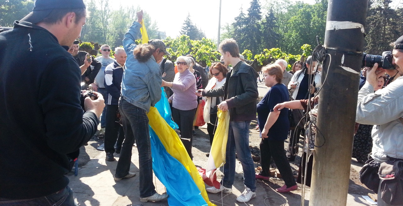 Потом один из них – тот, что с хвостиком, – развернулся и понесся к мачте, на которой висел украинский флаг с каким-то еще. Он сорвал оба флага, потом стал особо яростно драть украинский, потом и вовсе его поджег.