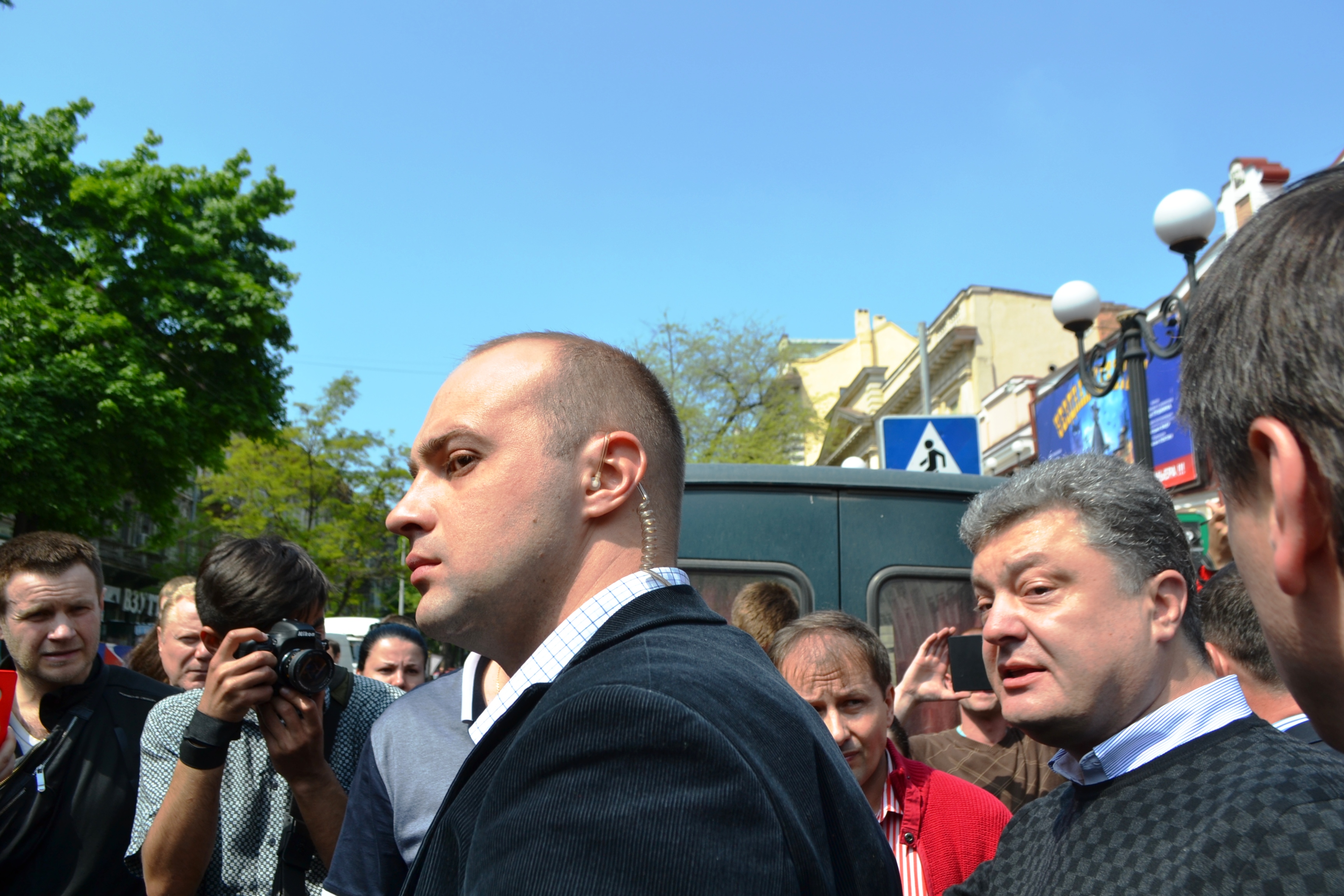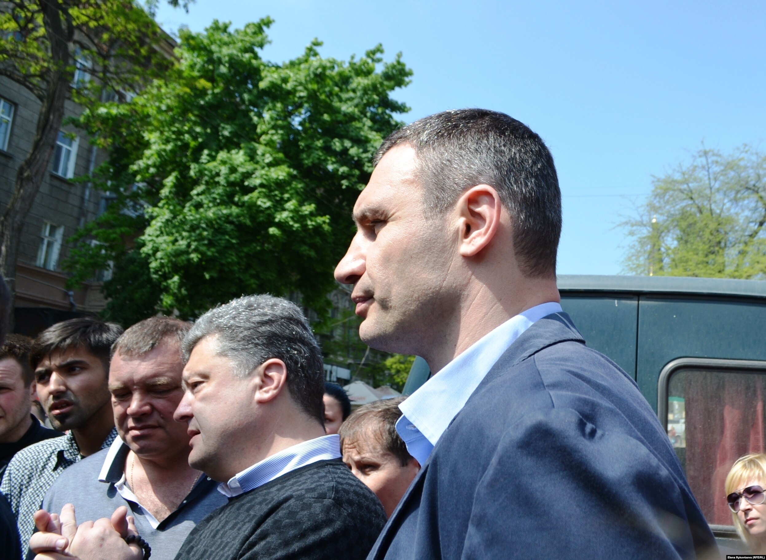 На улочке, параллельной Дерибасовской, я вдруг увидела толпу прохожих, которые общались с Петром Порошенко и Виталием Кличко.