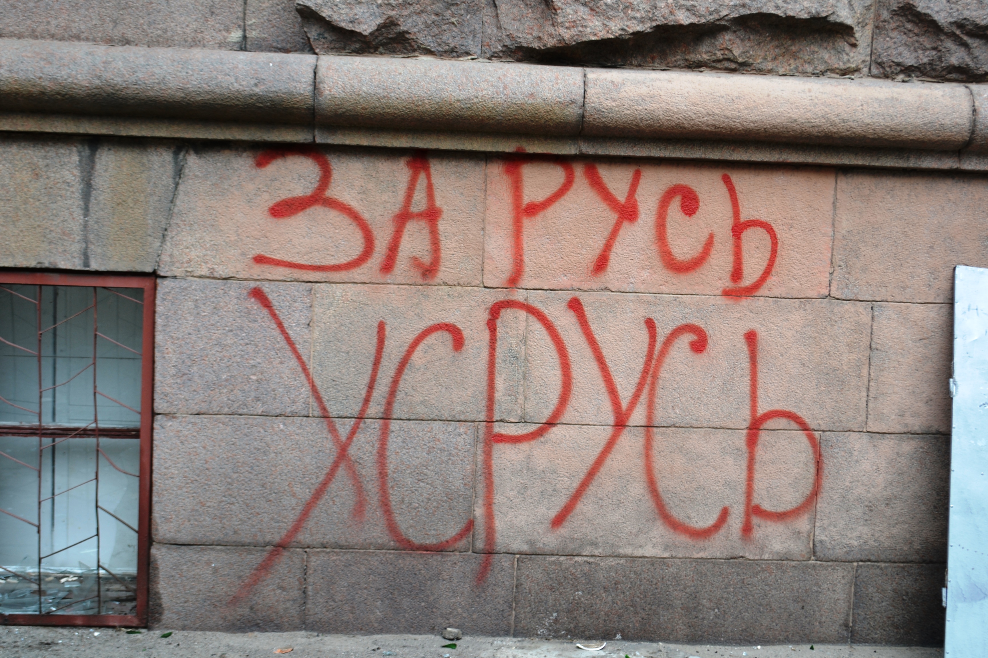 Стены изрисованы надписями, которые явно не были сделаны обитателями "антимайдановского лагеря".