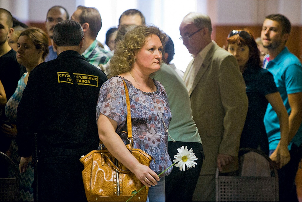 | Родственники и друзья «узников Болотной» приходят на процесс с цветами | Жена Алексея Полиховича Таня приходит на суд, чтобы глазами «разговаривать» со своим мужем |