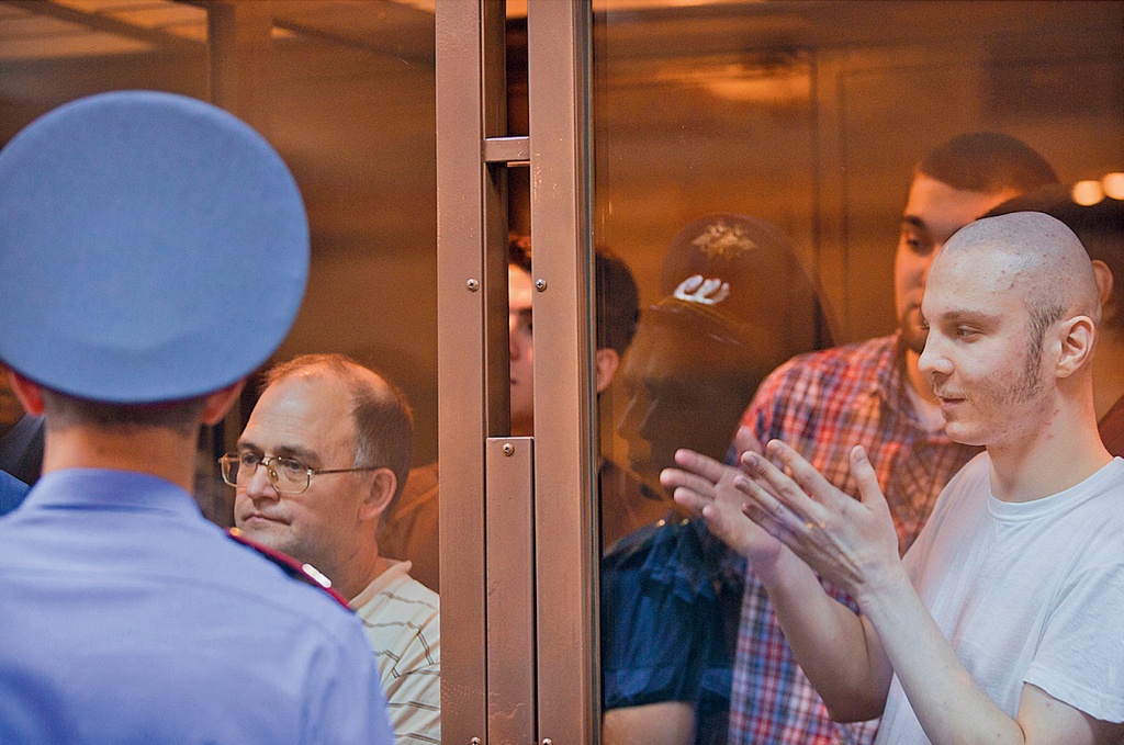 Она спокойно дает высказаться всем адвокатам и подсудимым, а потом все тем же мягким голосом отказывает во всех ходатайствах. Сталь в ее голосе появляется только тогда, когда публика в зале начинает аплодировать в ответ на выступления подсудимых. «Вскочивший мужчина, покиньте зал судебного заседания! И не возвращайтесь!» — громким голосом приказывает она. Или выгоняет из зала маму Николая Кавказского, которая вместе с другими аплодирует своему сыну, когда тот зачитывает из клетки свое очередное заявление. «Пока все, что происходит на процессе, очень напоминает школьный урок, — замечает автору подсудимая Маша Баронова. — Только ведь мы не на уроке в школе. И нам не отметки будут ставить, а дадут сроки».